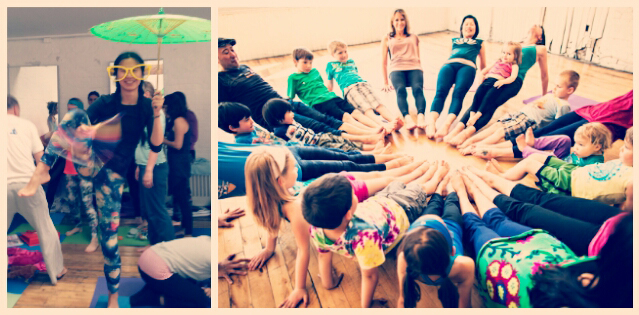 Family yoga workshop is especially good for practicing with very young kids who otherwise would have a hard time paying attention during a kids-only class. Parents are encouraged to support their kids go into poses, make lots of physical contact, positive feedback, deep breathing, laughter and smiles, and lots of looking in each other's eyes.